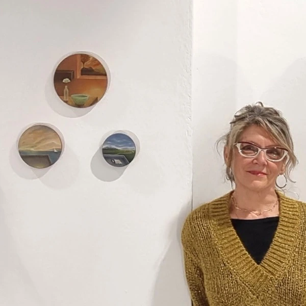 Monica Spada was born in 1959 in Forlì. Her relationship with the image began in the early 1980s when she dealt with photography on which she intervened pictorially. She began to paint in 1985. Her growth as a painter took place in contact with the ECLISSI group in Forlì, which brought together a number of artists from Romagna who focused on the recovery of the figure in the late-conceptual and trans-avant-garde periods. His painting followed a very personal path and he painted for a long time without exhibiting until 1994, the year in which he took part in his first collective exhibition sponsored by the Municipality of Meldola (Fc) "LA DIFFERENZA", curated by Enrico Lombardi. He continues to regularly exhibit his works in personal exhibitions (including: ''Prima della forma'' 2001 - ''Nel sogno dello spazio'' 2005 - ''Interni e figure'' 2006 - in 2010 ''Affacciarsi'' at IL VICOLO Galleria Arte Contemporanea) and collective exhibitions in Italy (including: ''Le figure'' 1998 - ''Il ritratto della memoria - Shoah'' 2005 - ''Labirinto: mito, edificio, danza'' 2006 - ''Vit'Arte'' 2009 - ''90x90 . .thinking of Tonino Guerra'' 2010). In April 2000 the Arte Mondadori magazine dedicated an extensive and detailed article to her. Afterwards she started a cultural collaboration with the "Vicolo" of Cesena and Marisa Zattini, who invited her to collective exhibitions and published her works on the magazine Graphie. In 2011 she took part in a group exhibition at the Blackheath Gallery in London. In 2012 she was invited to take part in the ''Biennale delle Chiese Laiche'' (Biennial of the Lay Churches), which brought together a selection of regional and national artists in the most prestigious exhibition venues in Romagna. In 2018 she began collaborating with the art critic and historian Franco Bertoni, who invited her to the exhibition ''Esercizi dello sguardo'', a group show in several locations, on contemporary painting in Romagna, and to ''Ultimi paesaggi'' at the Centro Polivalente Gianni Isola in Imola. In the autumn of the same year, together with her friend Raffaella Vaccari, she set up a double personal exhibition entitled 'Soglie e Archeografie' in the evocative spaces of the Manica Lunga of the Museum of Rimini. His work has been examined by: Francesco Giardinazzo, Enrico Lombardi, GianRuggero Manzoni, Rocco Ronchi, Marisa Zattini and Franco Bertoni. Marisa Zattini writes: "To link words to things, images to dreams, colours to emotions in a rarefied silence. Privileged places because they are invented and non-existent if not beyond the threshold of reality for an iron logic of that ultimate and primary sense of things. A necessary and essential becoming in Monica Spada's painting. Assignments of pauses, of pauses, of platonically ostensive states of tranquillity. The 'misery' of greatness - or of the smallness of being -. Sensitive places and secrets whispered in the flow of an imaginary story that, strictly true to itself, has carved out and unfolded in clear, pure, authentic cyclical dimensions over the last twenty years. Monica Spada has fixed the limits of her architectural spaces and restored them to the equivalence of the sensitive values of a poetic gaze on the sense of a time of the soul". This writing aptly describes Monica Spada's research and the evolution of her painting, particularly the most interesting works of her recent production, the miniatures, to which she gives a very personal and strongly contemporary interpretation. In 2022 she began her collaboration with the Piero Della Francesca Art Gallery in Arezzo.
